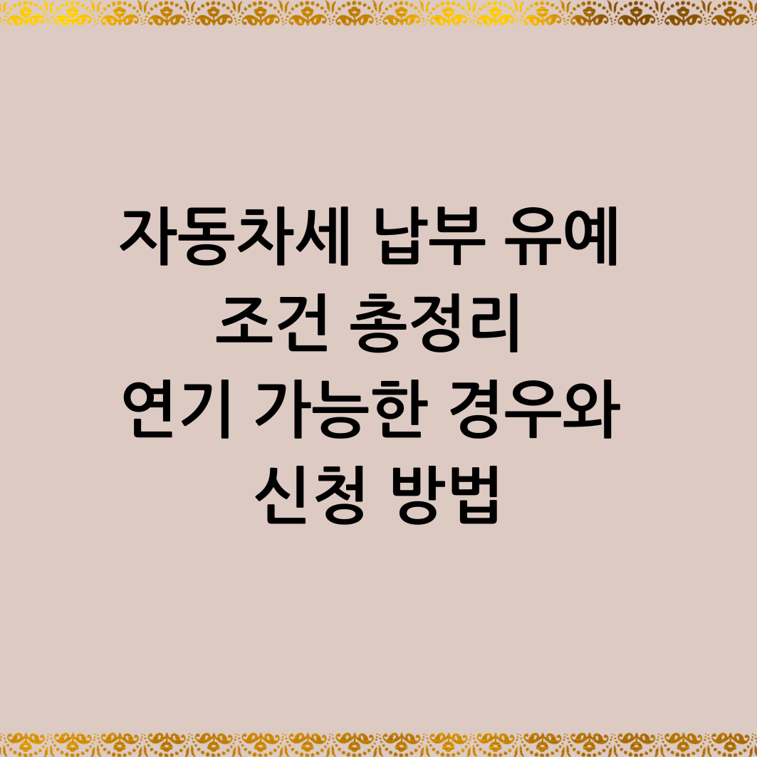 - 유예는 세금 감면이 아님: 자동차세를 면제받는 것이 아닌, 단순히 납부 기한만 연장되는 제도입니다.