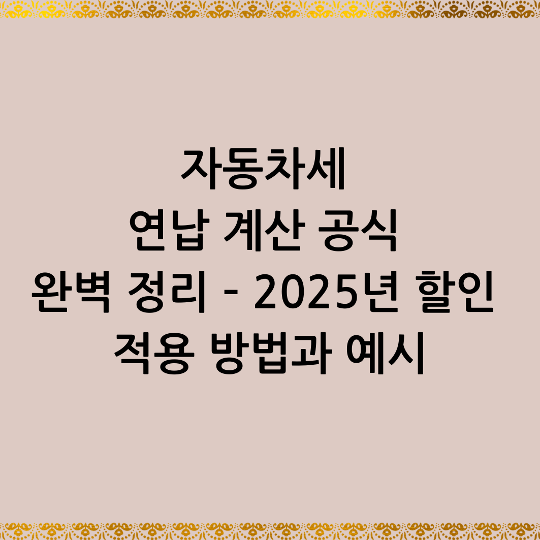 이번 글에서는 2025년 자동차세 연납 계산 공식과 예시를 누구나 쉽게 이해할 수 있도록 자세히 설명드립니다.