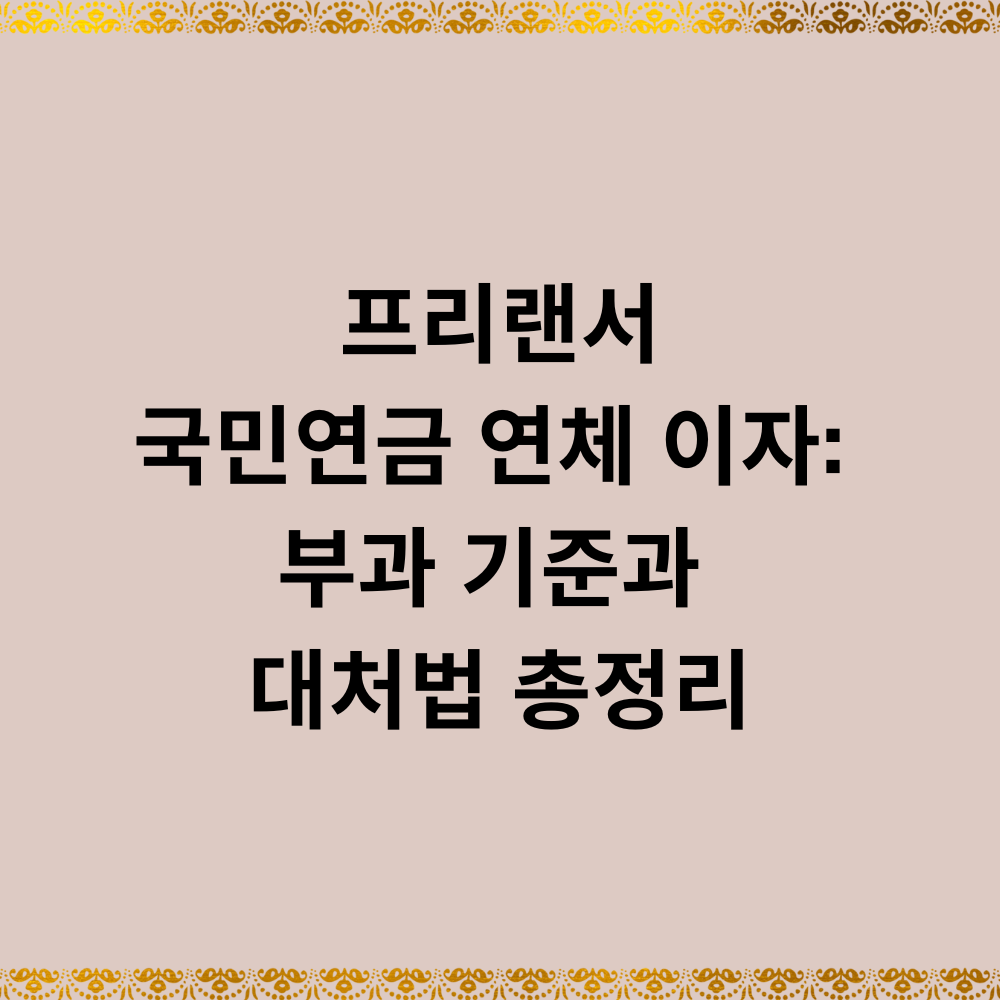 이 글에서는 프리랜서 국민연금 연체이자의 산정 방식, 부과 절차, 연체 방지 노하우, 추후 납부(추납) 제도까지