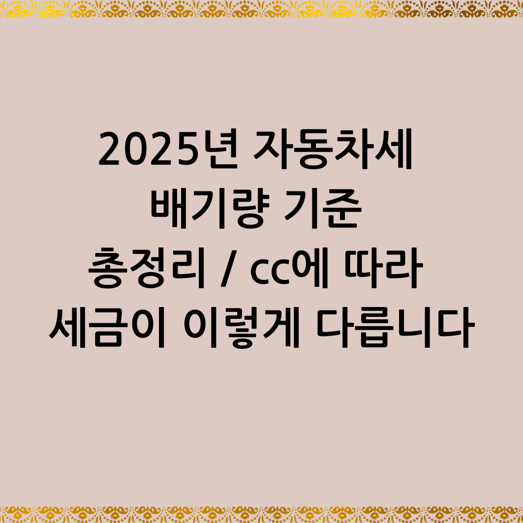 자동차세를 계산할 때 가장 중요한 요소는 바로 ‘배기량(cc)’입니다.